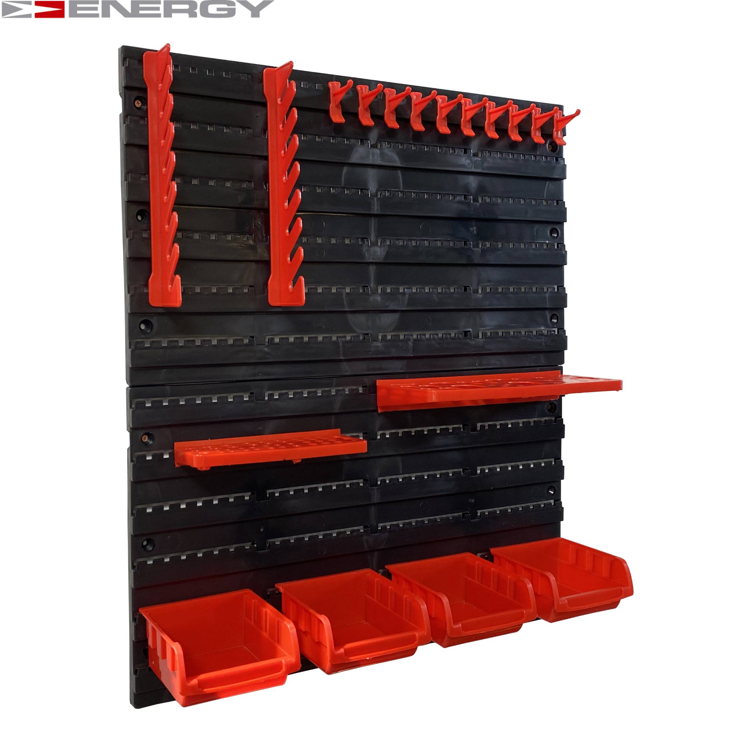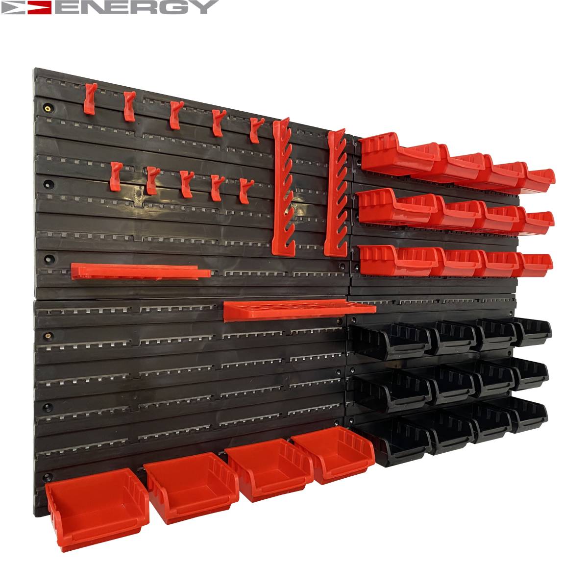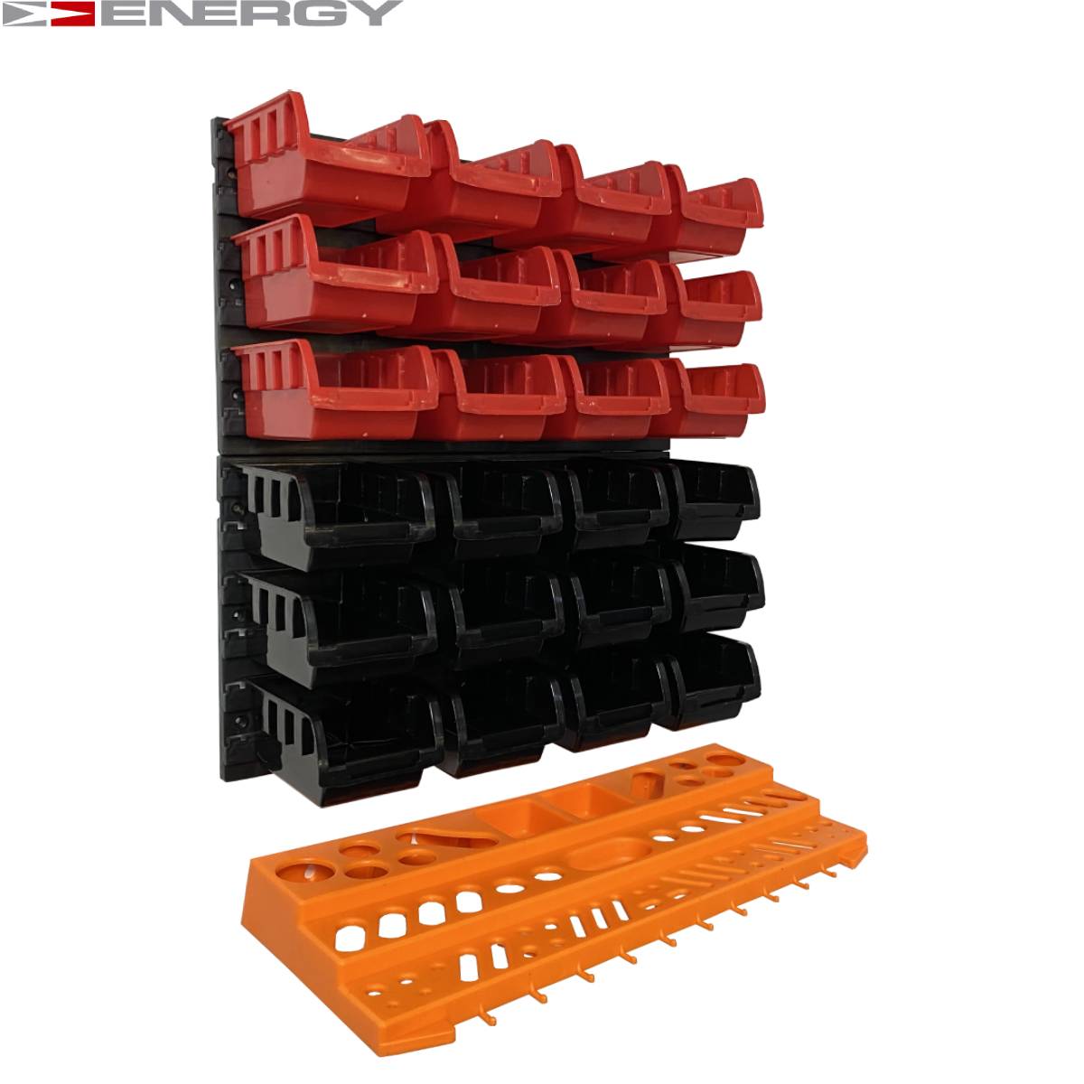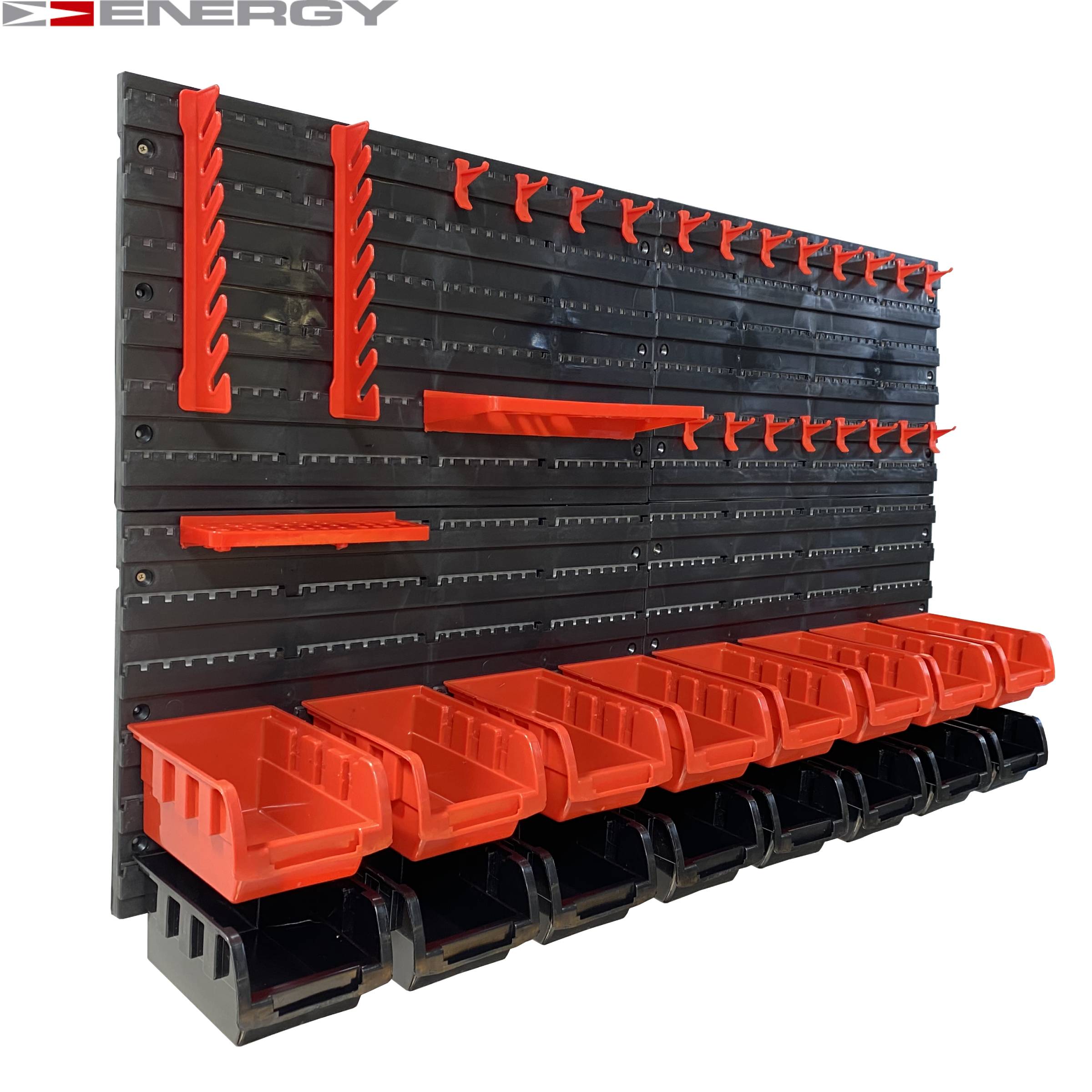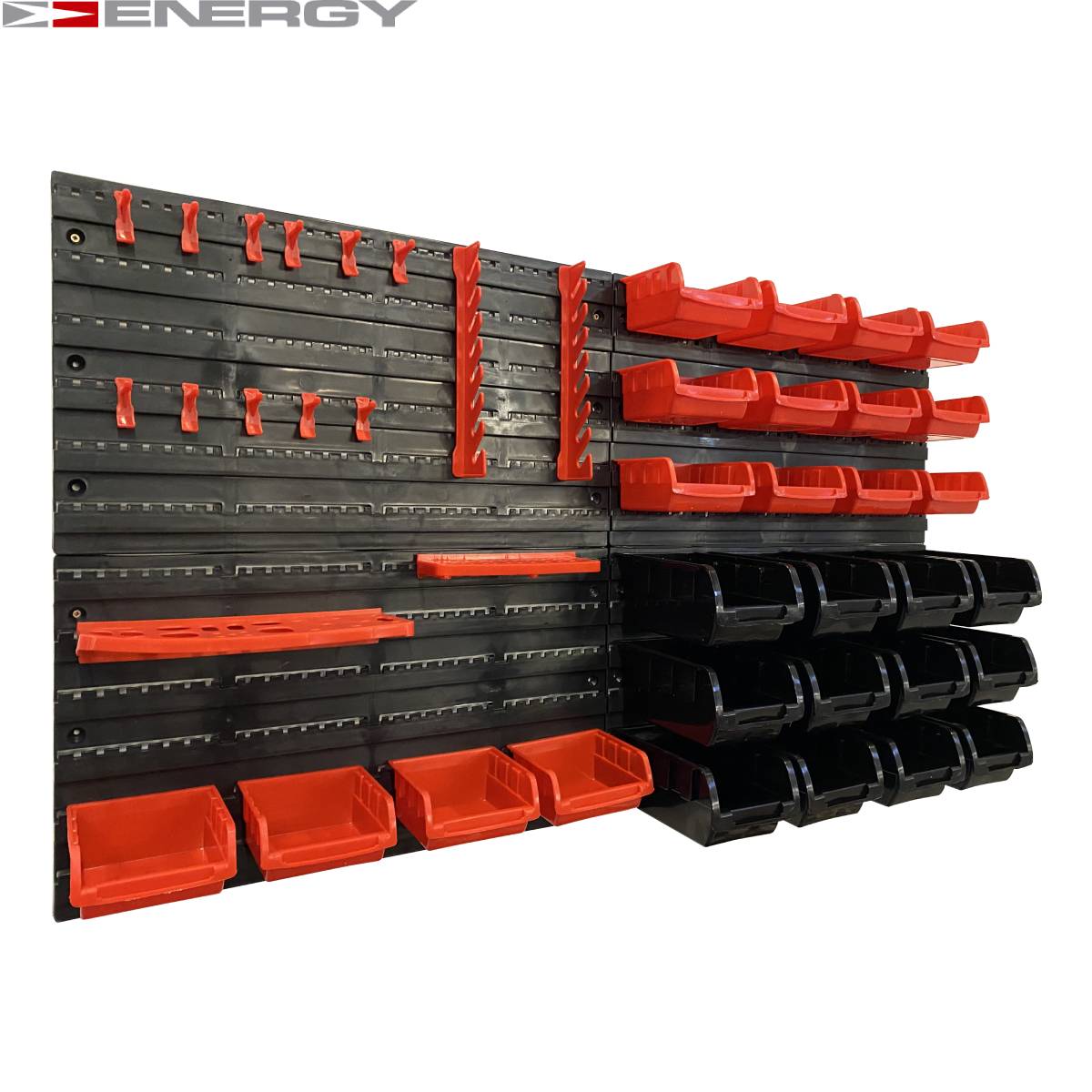 Tablica Narzędziowa Warsztatowa 43 Elementów Zestaw pojemników i tablic Zestaw zawiera następujące (plastikowe) elementy / części: 16 x pudełek - 160 x 102 x 75 mm 24 x Uchwyt narzędziowy 4 x panele ścienne - 475 x 272 x 15 mm