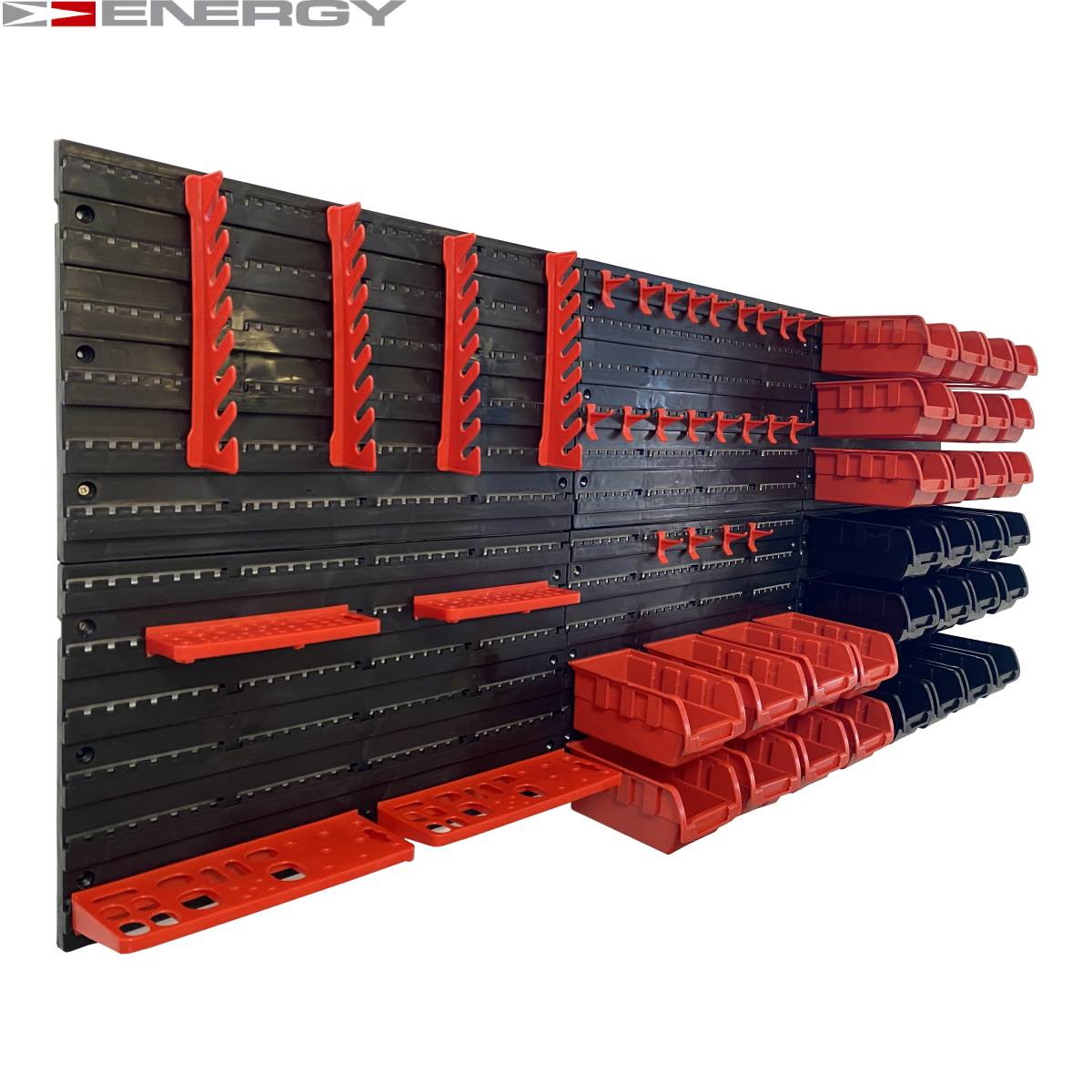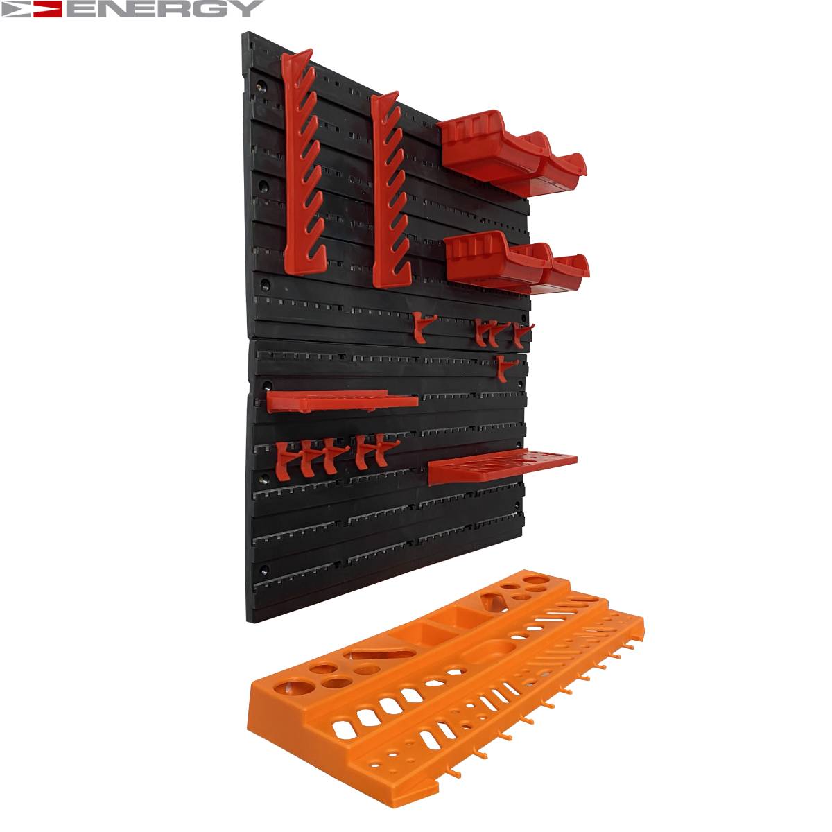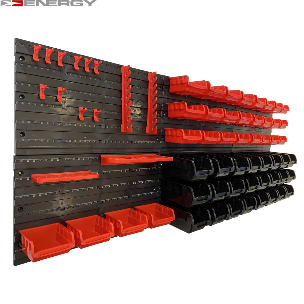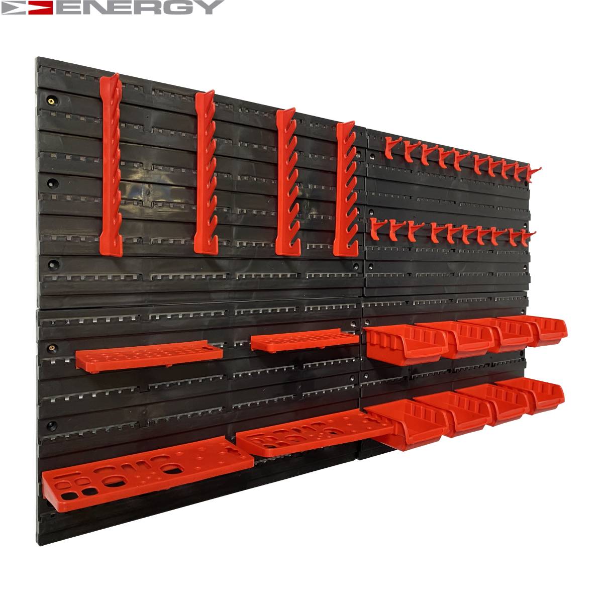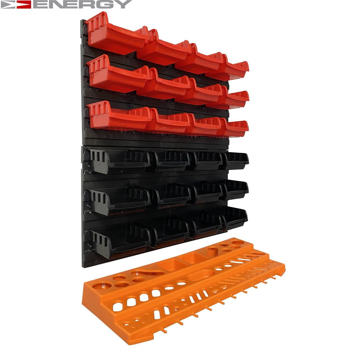 Tablica Narzędziowa Warsztatowa 43 Elementów Zestaw pojemników i tablic Zestaw zawiera następujące (plastikowe) elementy / części: 16 x pudełek - 160 x 102 x 75 mm 24 x Uchwyt narzędziowy 4 x panele ścienne - 475 x 272 x 15 mm