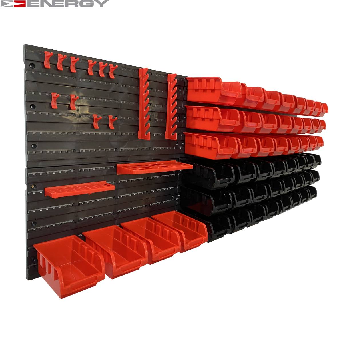 Tablica Narzędziowa Warsztatowa 66 Elementów Zestaw pojemników i tablic Zestaw zawiera następujące (plastikowe) elementy / części: 32 x pudełka - 160 x 102 x 75 mm 28 x Uchwyt narzędziowy 6 x panele ścienne - 475 x 272 x 15 mm